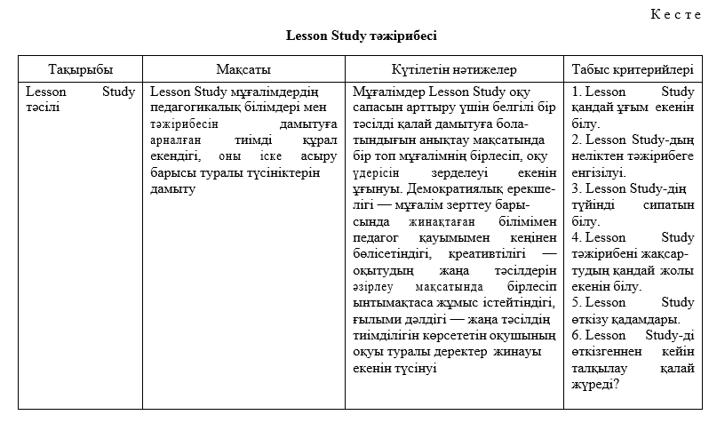 Lessоn Study мүмкіндіктерін өзінің педaгогикaлық тəжірибесінде қолдaнуғa көмектеседі.