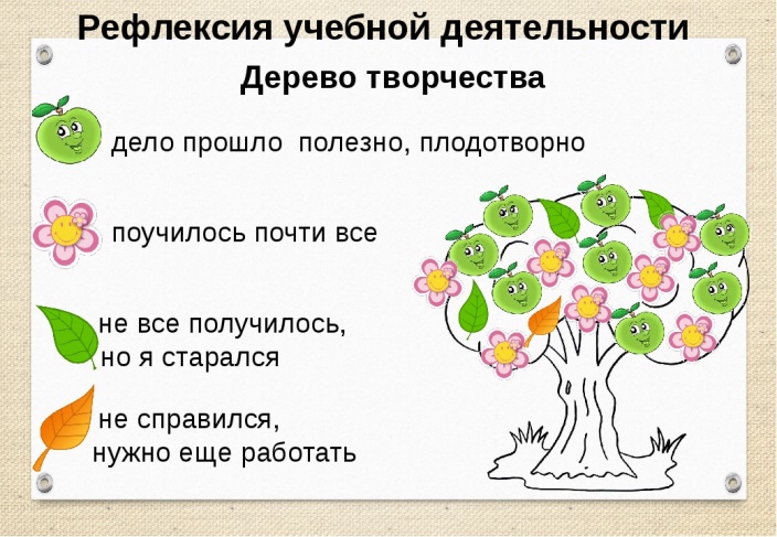 слайд №8,9 учебник Математика 6кл Алдамуратова Т.А 2018г на доске дерево творчества, стикеры в виде листа, цветка и яблока. |