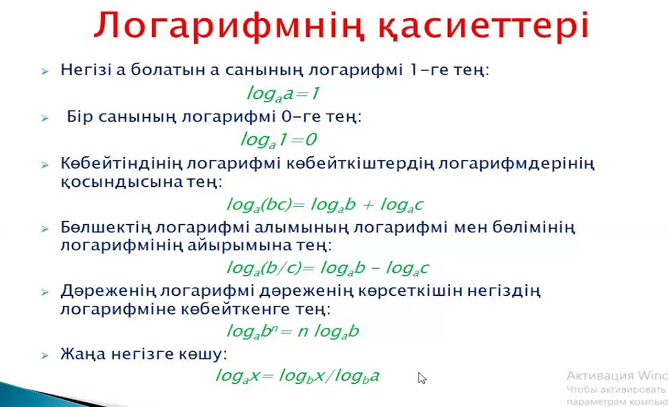 І топқа: Логарифмнің қасиеттері?