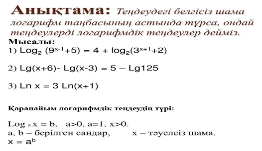 Логарифмдік теңдеулер және олардың жүйелері |