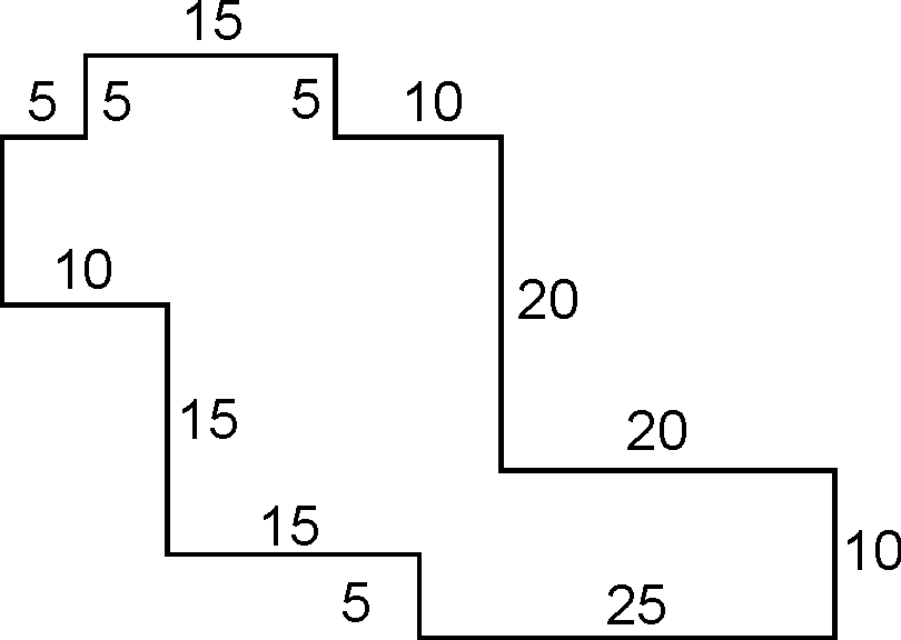 юзаннаға анасы бау-бақшадан салат салатын жерді берді.Осы суретте жердің планы көрсетілген. Бұрыштары тік өлшемдері көрсетілген. Осы жерге Сюзаннаға қанша дақылдар керек болды? Егерде 10 квадрат жерге 0,1 дақыл кетсе.