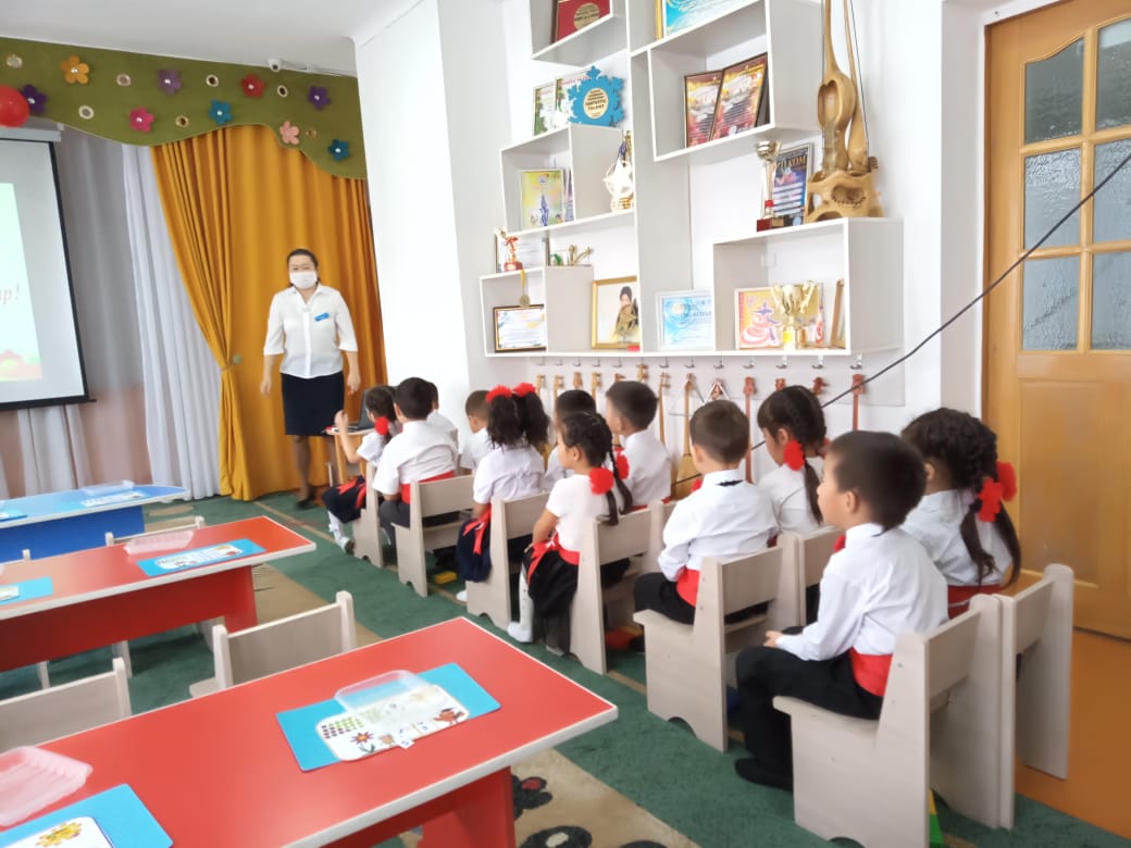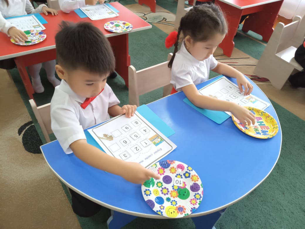 Балалар қызығушылықпен орындарын табады, назарларын шоғырландырады.