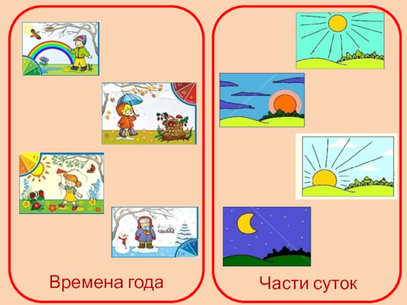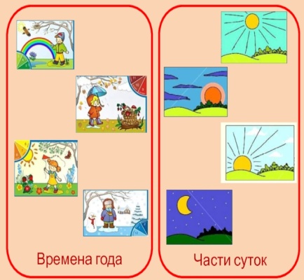 Сергіту жаттығуын орындайды. Балалар шашылып жатқан қима суреттерден жыл мезгілдерін құрастырады және атайды. Тілдік және тілдік емес дыбыстарды ажыратып, тақтаға іледі. Төртінші заттың суретін табады. Түстеріне сәйкес жұлдыздар мен бұлттар санын анықтайды. |