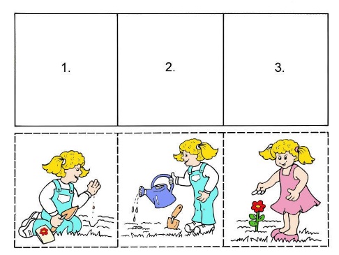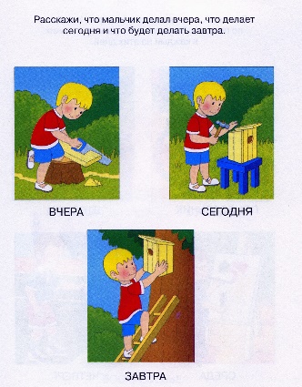 ІV. Уақыт (кеше, бүгін, ертең) лексикалық тақырыбы бойынша белсенді сөздік қорын дамыту. Сериялы суреттермен жұмыс. Гүлдің өсіп шығуы жайында айтып, сөйлемдер құрастыру. Бүгін ол қазір болып жатыр, ертең-ол болады. Кеше ол гүлшанақ болды, одан кейін ол бүгін ашылды, ал ертең ол қурайды. Б