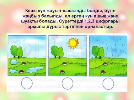 Сөйлем құра Жаңбыр ....... Күн .......... Қар......... Мұз ..........
