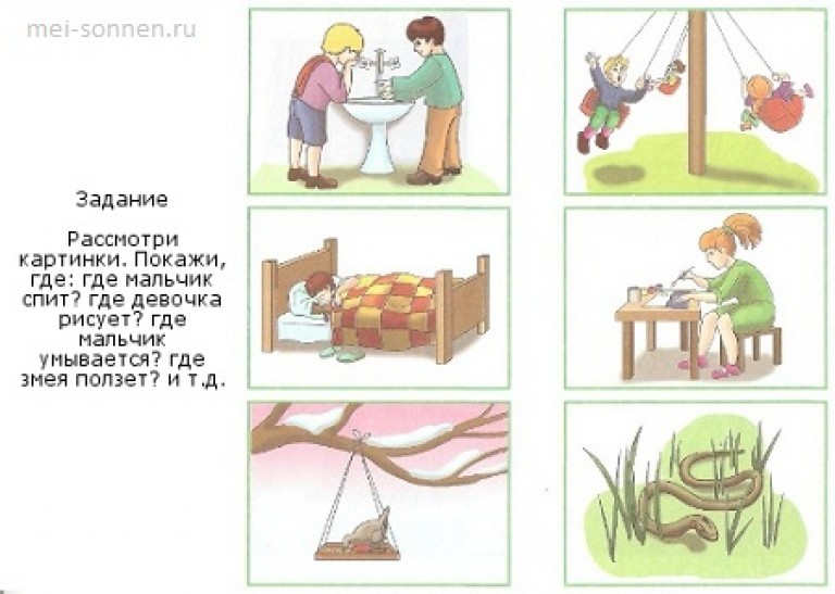 Балалар біз бүгін сабақта уақыт ұғымын үйренеміз. Алдымен әдеттегідей артикуляциялық жаттығуларымызды жасап алайық. ІІ. Артикуляциялық жаттығулар “ « « « «Әткеншек» жаттығуы ІІІ. Сөйлеу тілін түсінуін дамыту Суреттер бойынша сұрақтарға жауап бер. Қолын жуып түрған балалар қайда? әткеншек ойнап жатқан балалар қайда? Ұйықтап жатқан ала қайда? Сурет салып жатқан қыз қайда? Дән жеп жатқан құс қайда? Шөпке тығылған жылан қайда?