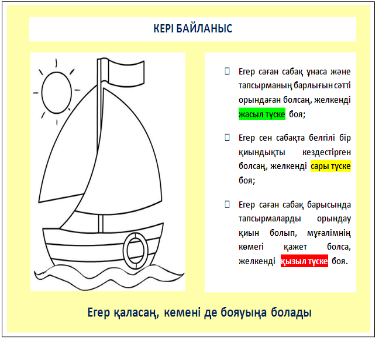 қорытындылау мақсатында мұғалім оқушылармен кері байланыс орнатады.