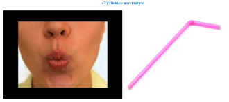 «Түтікше» жаттығуы. Орындалуы: пілдің тұмсығы секілді ерінді алға созып. 2-3 секунд ұстап тұру.