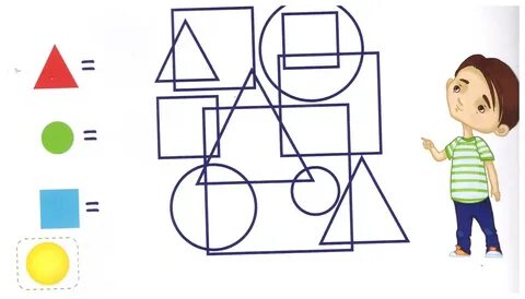 Суреттегі геометриялық фигралар санын тауып жазыңдар, түсіне сәйкес бояңдар