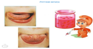 «Тәтті тосап» жаттығуы Орындалуы: ауызды сәл ашып, жалпақ тілдің алдыңғы шетімен жоғарғы ерінді жоғарыдан төменге қарай жалау.