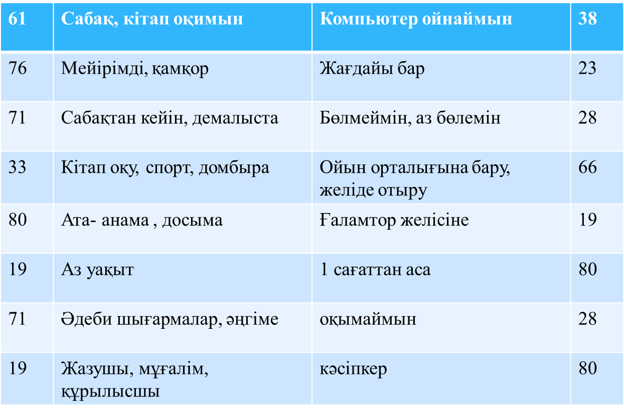 1.Бос уақытыңды қалай өткізесің ?