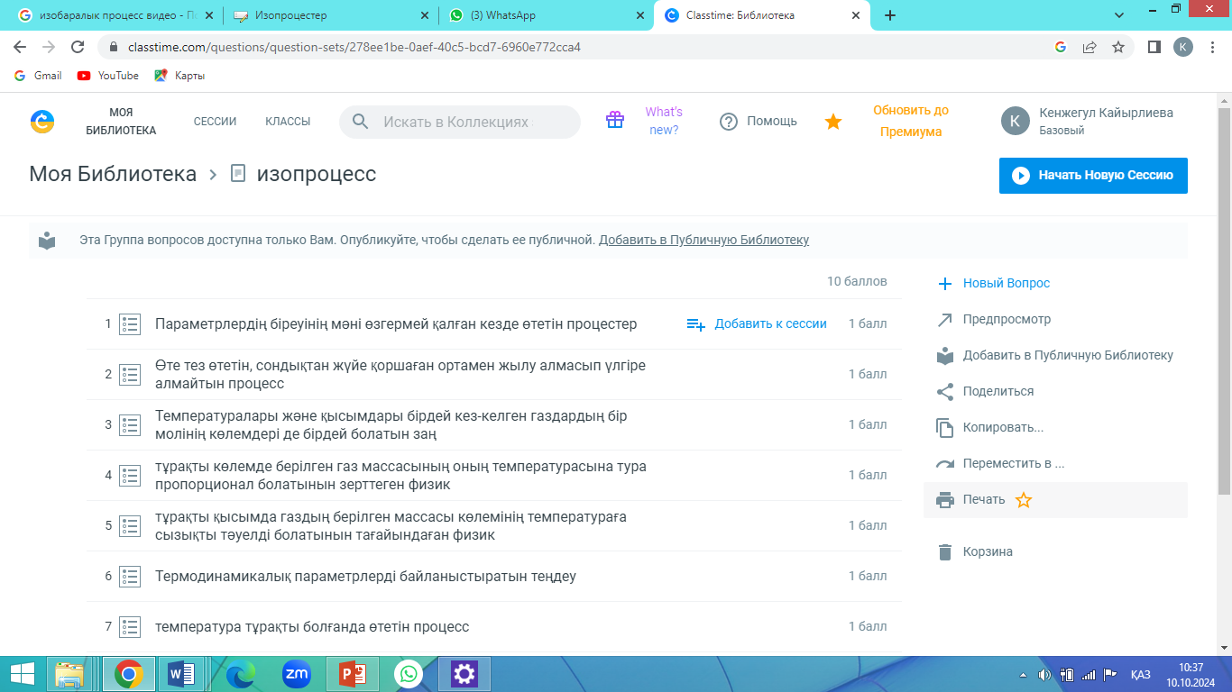 . Қорытындылау. класс тайм қосымшасында тест тапсырмасын беру арқылы, сабақты қорытындылаймын