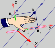Ампер күшінің, ток күшінің, магнит индукция векторының бағытын анықтау үшін сол қол ережесін қолдану