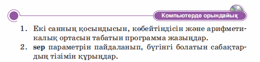 6.3.2.1 Python тіліндегі сызықтық алгоритмдерді жазу; |