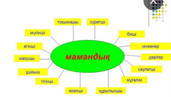 Бүгінгі заманда мамандықтың түрі өте көп. Дәрігер, мұғалім, инженер, заңгер, ІТ-маман, дизайнер, эколог сияқты әр саланың өз маңызы бар. Алайда ең бастысы – адамның өз бейімін, қызығушылығын және қабілетін анықтай білуі. Қазіргі қоғамға тек білімді емес, өз ісін сүйетін, жауапкершілігі жоғары, креативті мамандар қажет. Сондықтан мектеп кезінен бастап әр оқушы өз қабілетіне сай бағыт таңдап, болашақ кәсібін жоспарлауы тиіс.
