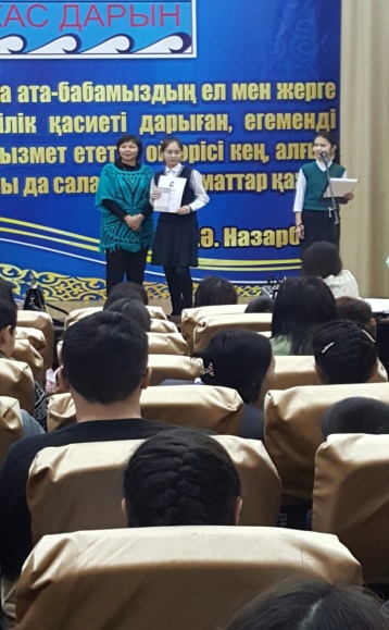 10-сыныпта (2016ж.) ІІ орынды иеленді. Менің төменгі сыныптарда