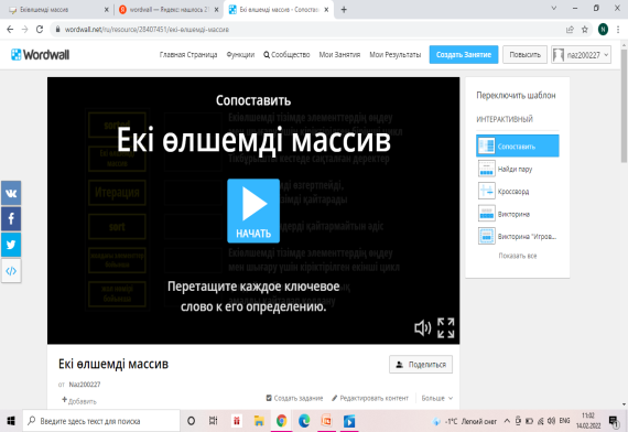 Жеке жұмыс: Wordwall прогаммасында тапсырма орындау