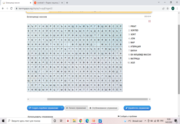 Жеке жұмыс: Learning.apps прогаммасында тапсырма орындау