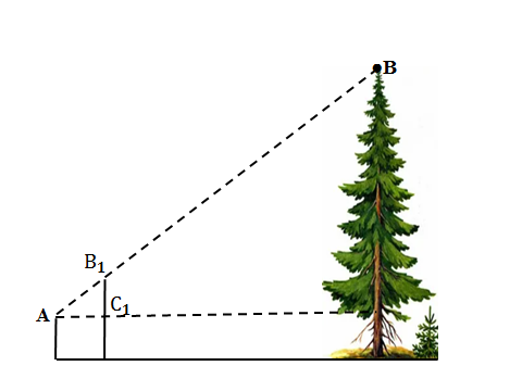 8. Биіктіктері 1 және 1,5 метр екі қазықтың арасы 1 м. Шеткі қазықтан ағашқа дейінгі қашықтық 9 м. Ағаштың биіктігін табыңыз.