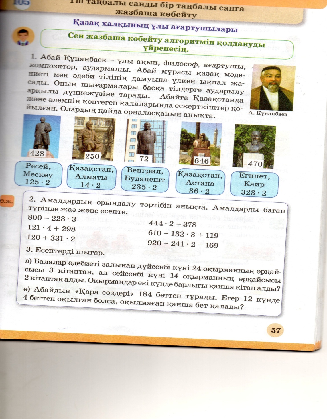 Дескриптор: А.Құнанбаев туралы айтады Дескриптор: Есептерді шығарады, амалдардың орындалу ретін анықтайды1-б