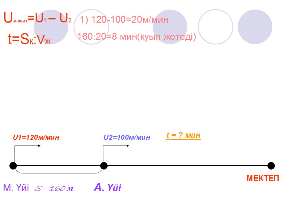 Түрлі түсті қарындаш арқылы (комментарий Сызбаға қара. Не бейнеленген? Қозғалысқа неше автокөлік қатысты? Қандай мәліметтер белгілі? Не белгісіз? Екі автокөлік қанша уақыттан кейін кездесетінін қалай табуға болады?