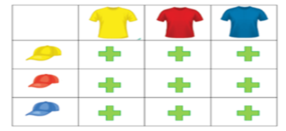 Дескриптор: Есептеу жүргізеді Есептеуді салыстырады Дескриптор: Фигуралардың орналасу ретін анықтайды Фигураларды қиып алып, жазық бетке орналастырады. Дескриптор: Баскиімдер мен футбол жейделерінен жинақ таңдаудың қанша нұсқасы бар екенін анықтайды Кесте сызып, толтырады Дескриптор: Тақтада ілулі тұрған фигуралардың ішінен берілген тапсырма бойынша фигураны таңдайды Дәптеріне сызады және өлшемін жазады «Әлеуметтік желі» әдісі |
