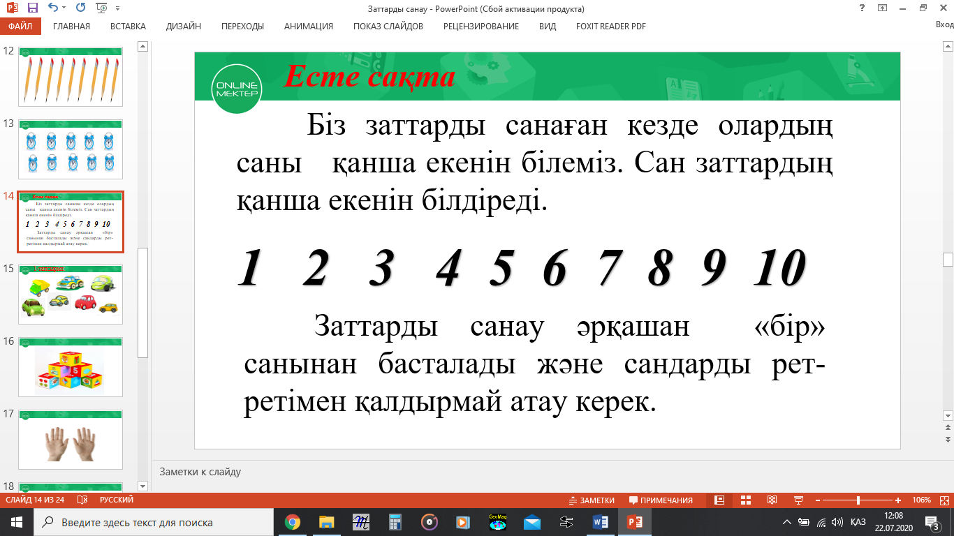 Бүгінгі сабақта 10-ға дейін санауды үйрендіңіздер,10-ға дейін тура және кері санай алдыңыздар, натурал сандар қатарындағы орнын анықтай білдіңіздер; Сабақты жақсы меңгердіңіздер деп ойлаймын, келесі кездескенше сау болыңыздар! |