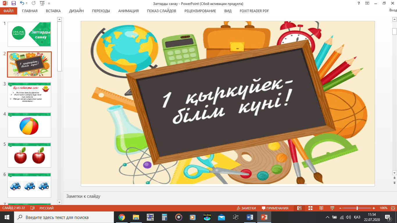 1-тапсырма. -Сұрақтарға жауап бер: Суретте неше мәшине бейнеленген? Дұрыс жауап 7 мәшине Суреттегі текшелер саны қанша? Дұрыс жауап 6 текше Екі қолда қанша саусақ ? Дұрыс жауап 10 саусақ Екі мысықта неше аяқ бар? Дұрыс жауап 8 аяқ 2-тапсырма. Бірге орындайық: Суретте неше зат бейнеленген? Заттарды санап, қанша зат болса сонша дөңгелекті дәптерлеріңізге суретін салып шығыңыздар. -Тамаша, енді осы дөңгелектерді бірге санап шығайықшы. Өте жақсы, балалар! |