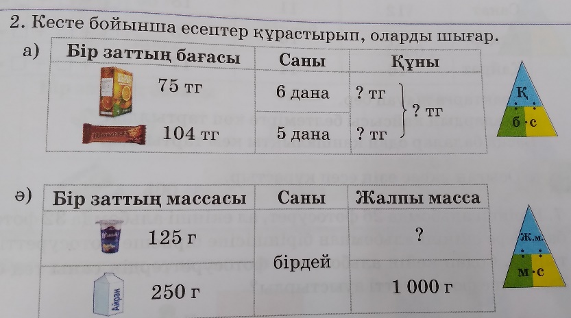 Ә) Шешуі: 1000:250 •125=500(грамм) Жауабы: айранның саны-4 , йогурттың ж.м.-500граммға тең |