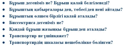 (Ұ) «Миға шабуыл» әдісі арқылы өткен тақырыппен жаңа сабақты байланыстыру мақсатында ой қозғау сұрақтарын ұжымдық талқылау. Оқушыларға жалпылама төмендегі сұрақтар және жаттығу түрлері беріледі. Сұрақтар: