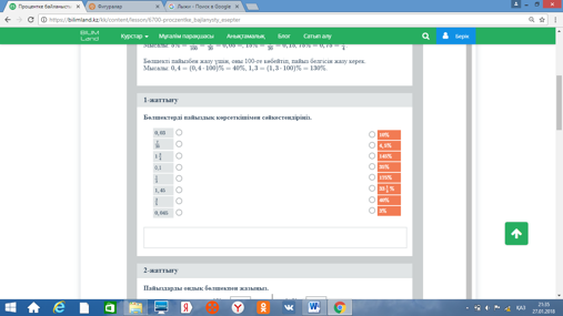 5.1.2.33 бөлшекті пайызға және пайызды бөлшекке айналдыру. |