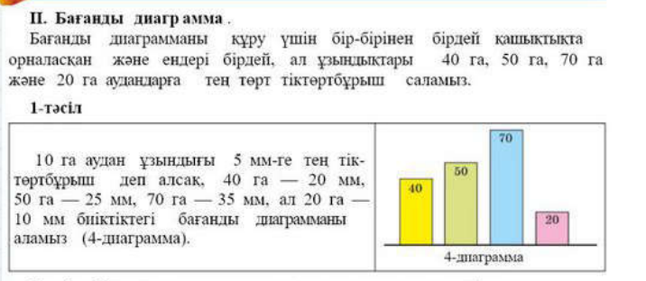 Барлық оқушылар үшін: Білім алушылар жаңа сабақ бойынша диаграмма ұғымын меңгереді. Көпшілік оқушылар үшін: Білім алушылар сызықтық және бағанды диаграммалар салуды үйренеді. Кейбір оқушылар үшін: Білім алушылар диаграммаларға арналған есептерді шығара алады . |