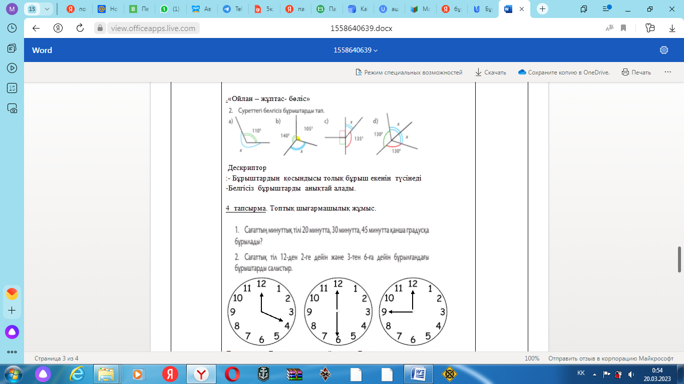 Дескриптор: 1.Дәптерге суретін салады. 2.Градустық өлшемін табады. Жалпы - 4 балл. |