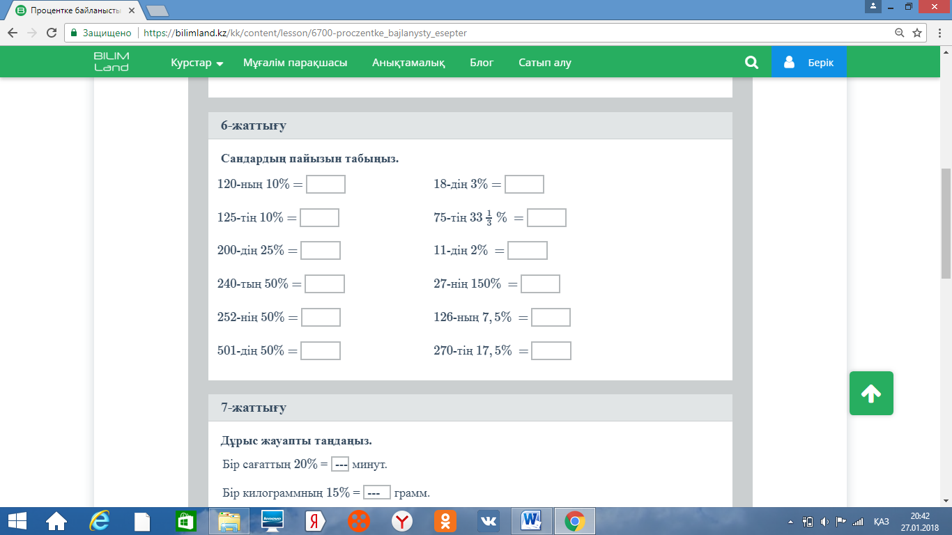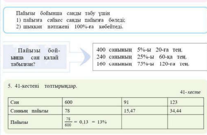 Сабақтың тақырыбы: Пайызға есептер шығару