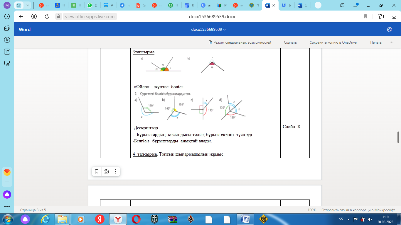 Дескриптор: 1.Есеп мазмұнын түсінеді. 2.Градустық өлшемін табады. 3.Жауабын анықтайды. Жалпы - 3 балл