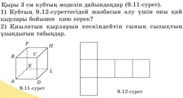 2-тапсырма Қыры 15см кубтың қаңқасын дайындау үшін ұзындығы неше метр және сантиметр сым керек? |