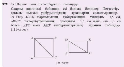 5.3.2.1 фигураларды қию және құрастыру арқылы есептер шығару. |
