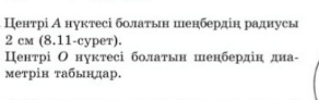 Дескриптор: 1.Шеңбердің диаметрін табады. 2.Жауабын анықтайды. Жалпы- 5 балл. |