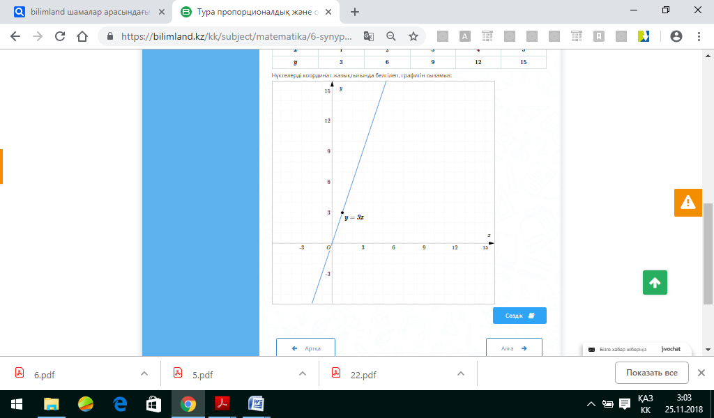 1) 2х – 9у + 6 = 0 теңдеуіндегі х айнымалысын у айнымалысы арқылы өрнектеп мәндес теңдеуге түрлендір. 2)) 7х – 2у – 1 = 0 теңдеуінің үш шешімін тап. |