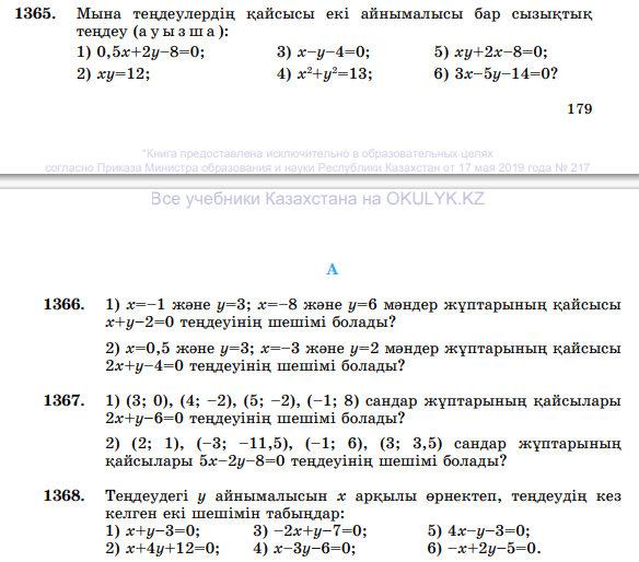 шығаруда 6.5.1.7 мәтінді есептерді сызықтық теңдеулер жүйелерін құру арқылы шешу; |