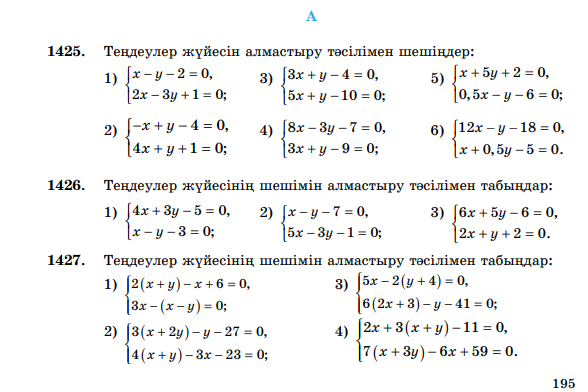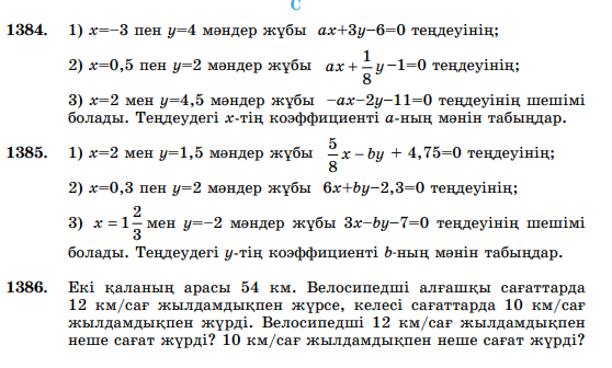 шығаруда мәтінді есептерді сызықтық теңдеулер жүйелерін құру арқылы шешу; |