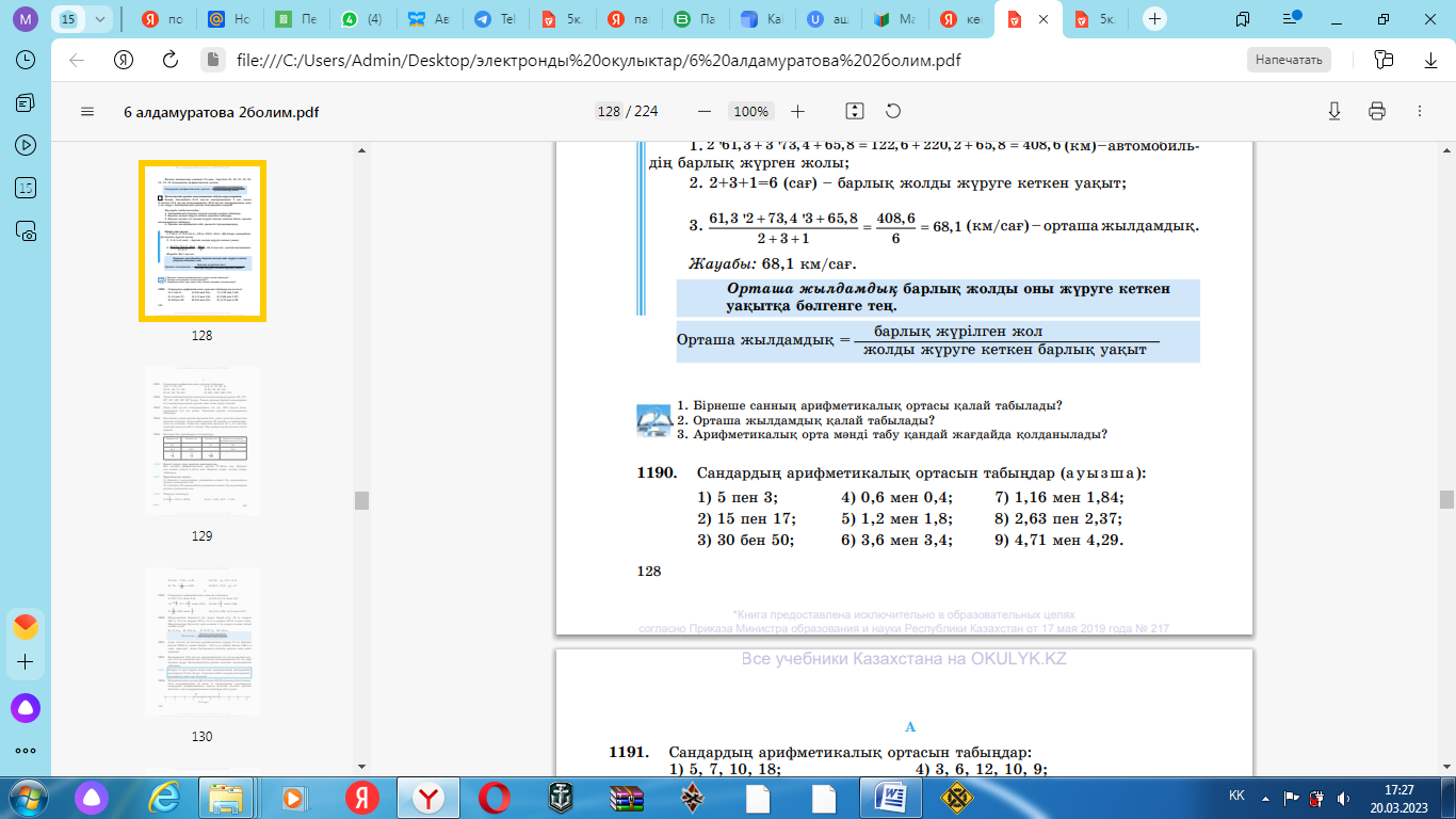 Дискриптор: -Натурал сандардың арифметикалық ортасын табады; -ондық бөлшектердің арифметикалық ортасын табады 2 балл |