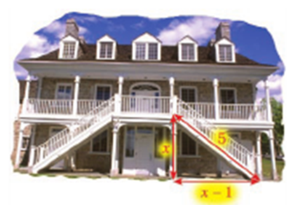 Шешуі: Айталық, х-жерден баспалдыққа дейінгі ара қашықтық болса, онда проекциясының ұзындығы х-1 м. Суретте көрсетілгендей баспалдақтың орналасуынан тік бұрышты үшбұрышты көруге болады. Пифагор теоремасын қолдану арқылы есептейміз: