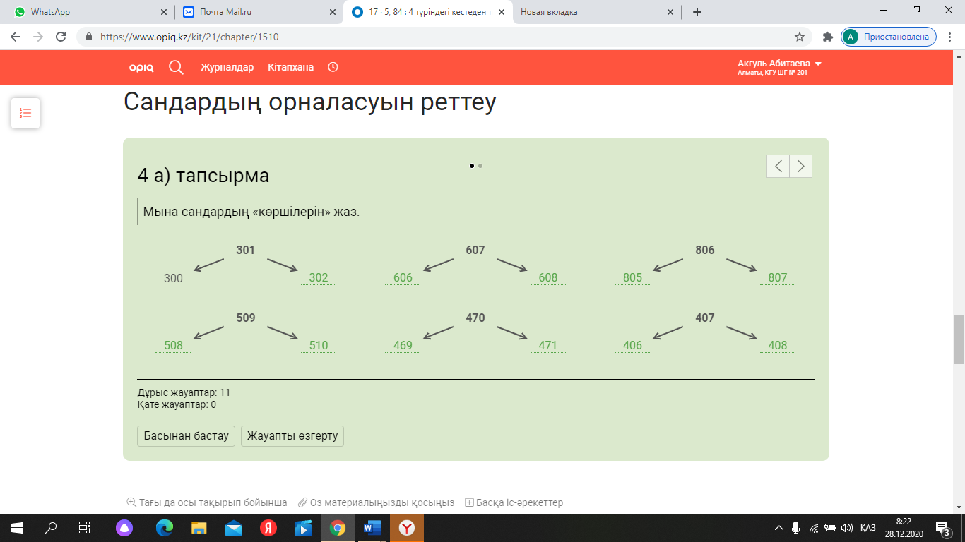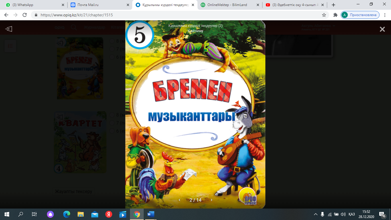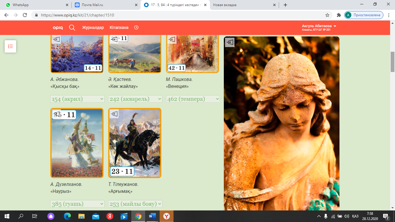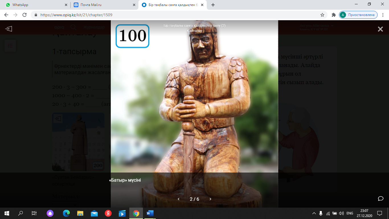 Дескриптор: Өрнектердің мәндерін дұрыс табады 2. Жазушылардың шығармаларын анықтайды. 3. Әдебиеттік оқу пәнінен өткен жазушылар шығармаларын атайды