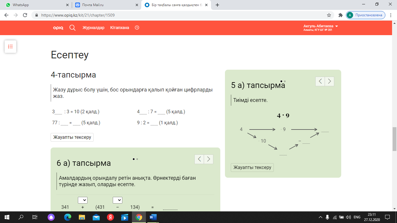 5 -тапсырма Есепті әр түрлі тәсілмен шығарады |