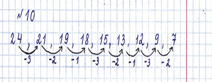 10-тапсырма 27,18,24,20,21,22..... 18+2=20 20+2=22….. 27-3=24 24-3=21…… Үй тапсырмасы 11-тапсырма 384*736/(2754-2721)-(5560-1060)/2=9526 (1125+875)*18+4328+(976543-123459)*1=893412 2025/15*(524+195)/9+(308308-207207)*2=212987