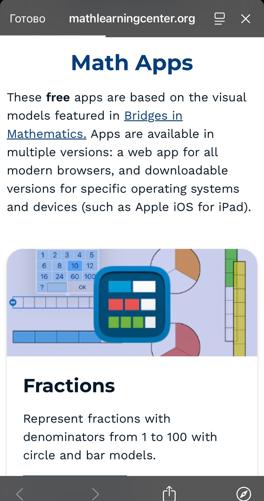 Mathlearningcenter.org сайты – бастауыш және негізгі мектеп оқушыларына арналған визуалды және интерактивті тапсырмаларды ұсынады. Бұл платформада математикалық ұғымдар қарапайым және түсінікті анимациялар арқылы түсіндіріледі. Мысалы, бөлшектер, геометриялық пішіндер және сандық амалдарды үйретуде оқушы нақты көрнекілік арқылы білім алады.