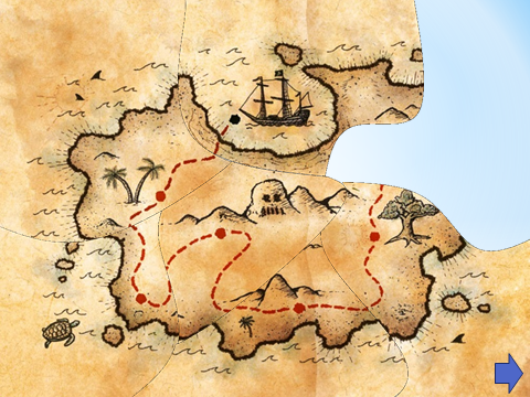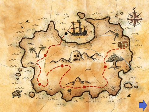 - Посмотрите, ребята, открылась четвертая часть карты, мы приближаемся к месту, где спрятан корабль «Черная Жемчужина» (Открывается часть карты – слайд 9 ).