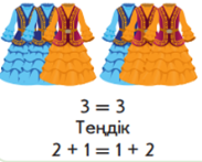 Бағалау критерий: Әріптің берілген мәніндегі бір амалды әріпті өрнектің мәнін табады Дескриптор: Суреттер бойынша теңдіктер мен теңсіздіктер құрады. Қыздардың және ұлдардың ұлттық киімдерінің санын анықтайды |