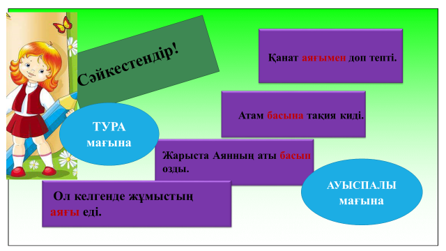 Сабақ тақырыбы Тура және ауыспалы мағыналы сөздер |